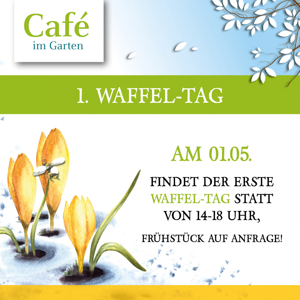Auch am 1. Mai öffnet unser Café im Garten sein Tor und erwartet euch mit dem ersten Waffeltag des Jahres! Genießt die Feiertagsstimmung inmitten des blühenden Grüns.